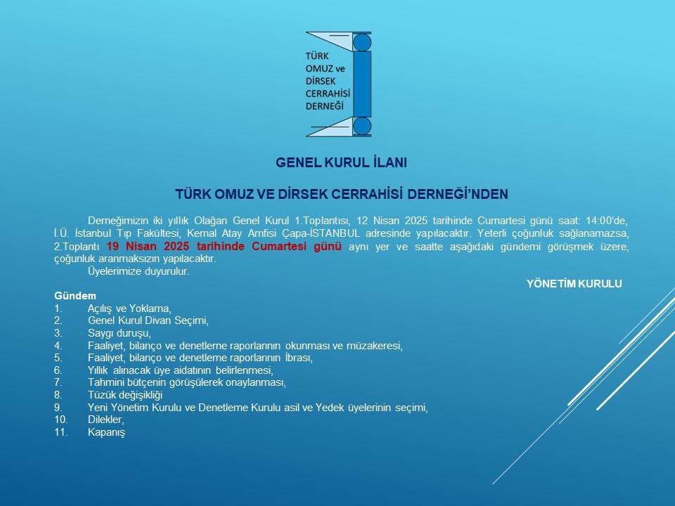 Türk Omuz ve Dirsek Cerrahisi Derneği'nin Olağan Genel Kurul Toplantısı -2025