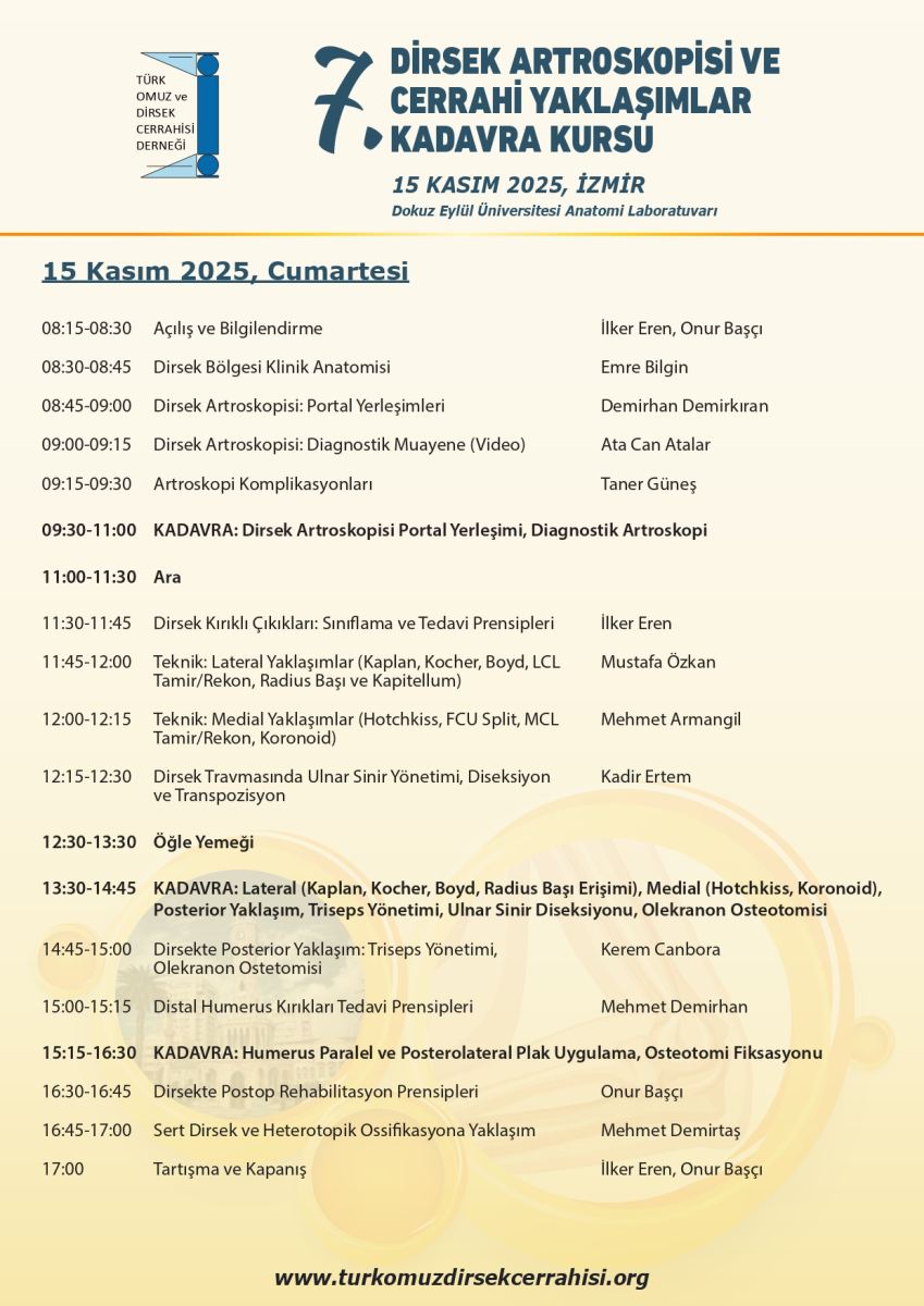 7. Dirsek Artroskopisi ve Cerrahi Yaklaşımlar Kadavra Kursu