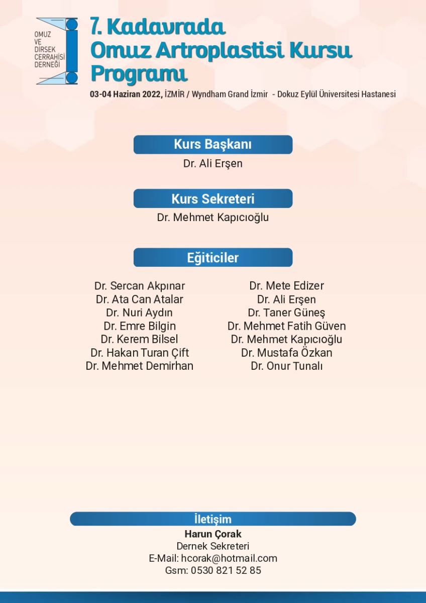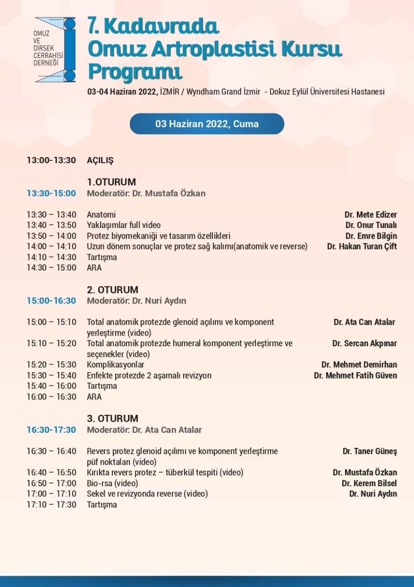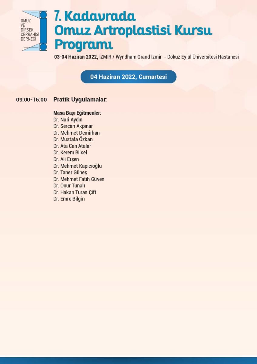 7. KADAVRADA OMUZ ARTROPLASTİSİ KURSU