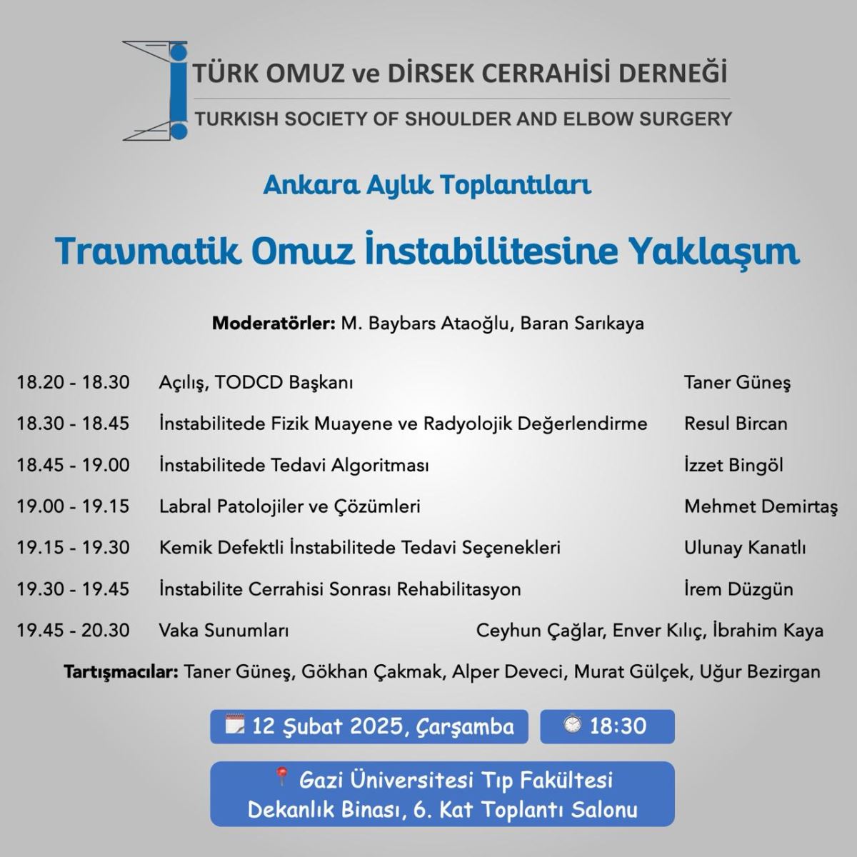 Ankara Aylık Toplantıları Travmatik Omuz Instabilitesine Yaklaşım